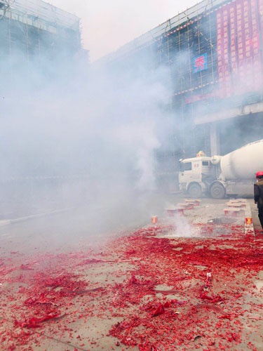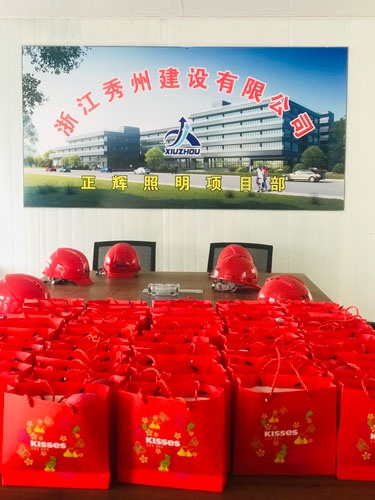 2019年3月29日上午10:18分,在嘉興市秀洲區(qū),浙江正輝照明工程有限公司正在舉行新廠房結(jié)頂儀式。
